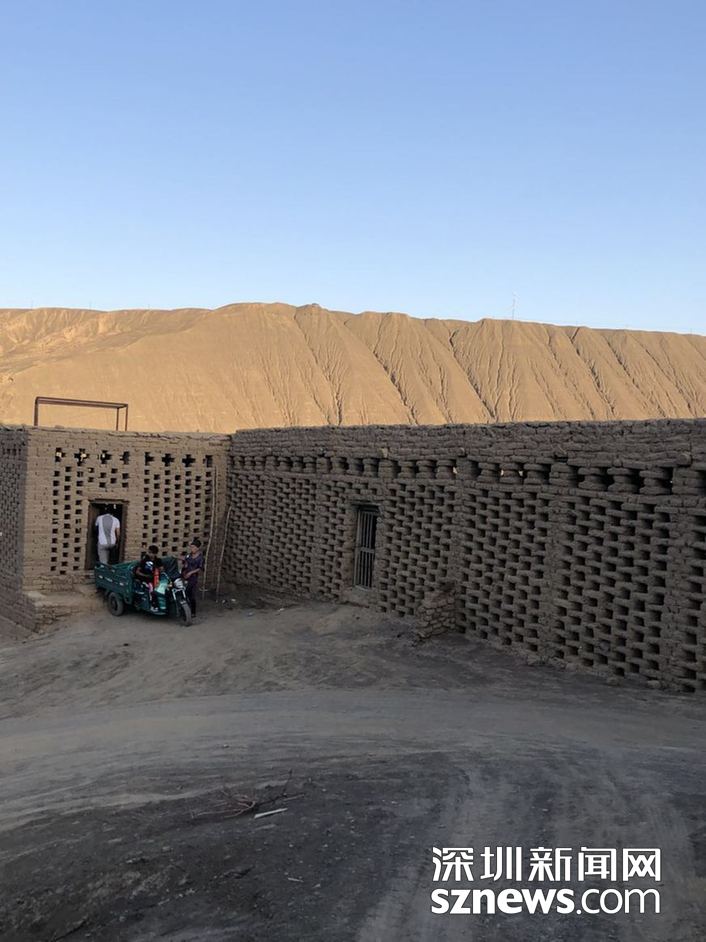 ??? ?在葡萄溝,隨處都可見到土磚砌成的鏤空方格子土屋,構成了當地一道獨特的風景,原來這是專門用來晾葡萄干的場地。 趙春麗攝