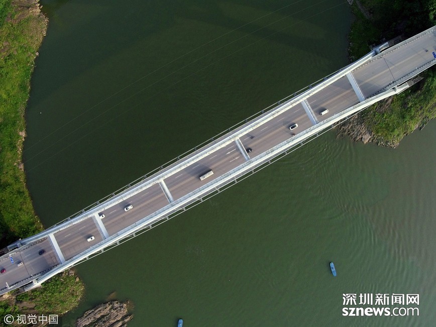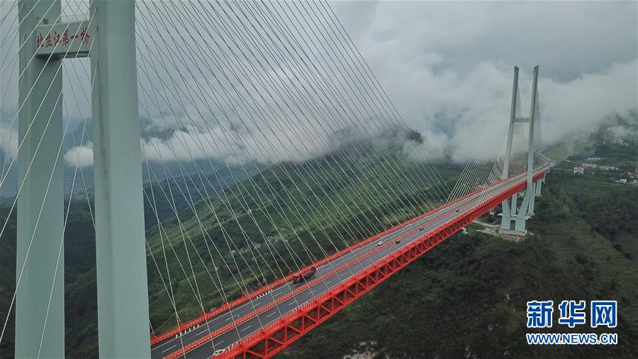 ??? 深圳新聞網訊? 畢都高速公路北盤江大橋是杭瑞高速公路畢都段的控制性工程,位于貴州省和云南省交界處,由貴州省和云南省共建。該橋橋面至江面高差達 565 米,成為目前世界第一高橋。主橋為鋼桁梁斜拉橋,主跨 720 米,目前位居同類型橋梁2016 年12 月 29 日正式通車。