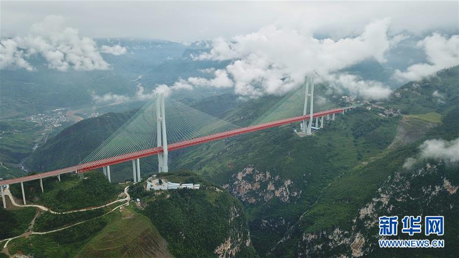 8月9日無人機航拍的北盤江大橋。 新華社記者歐東衢攝