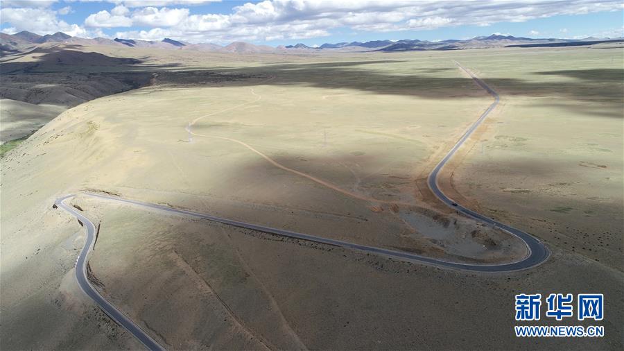 從空中鳥瞰西藏阿里地區(qū)札達(dá)縣公路(9月10日無人機(jī)拍攝)。 西藏阿里地區(qū)素有“世界屋脊的屋脊”之稱,平均海拔4000米以上。這里河流縱橫、湖泊密布、土林林立。從空中鳥瞰阿里大地,呈現(xiàn)出一幅幅獨(dú)特的美景。 新華社記者 普布扎西 攝