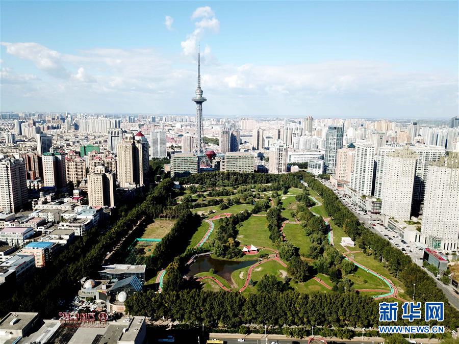 這是9月25日無人機拍攝的湘江公園全貌。 當日,哈爾濱市湘江公園正式開園迎客。這個集休閑、健身、娛樂、觀賞于一體的多功能都市公園由高爾夫球場改造而成,免費對市民和游客開放。 新華社記者 王建威 攝