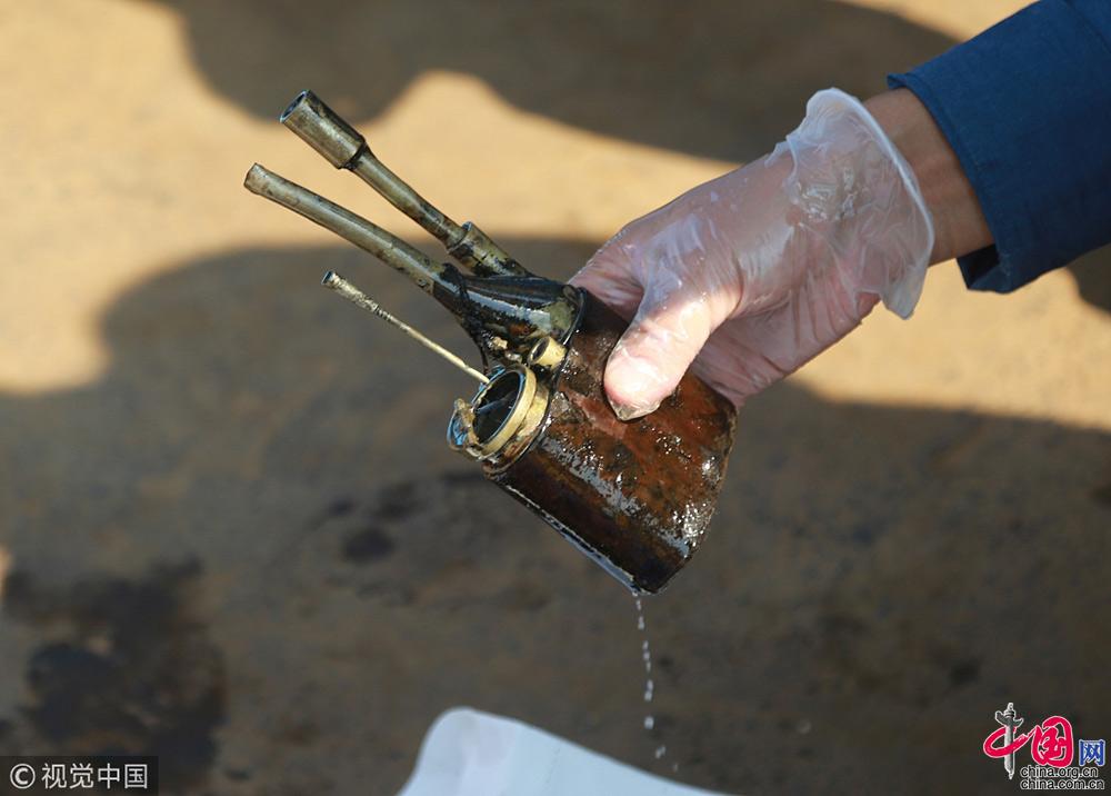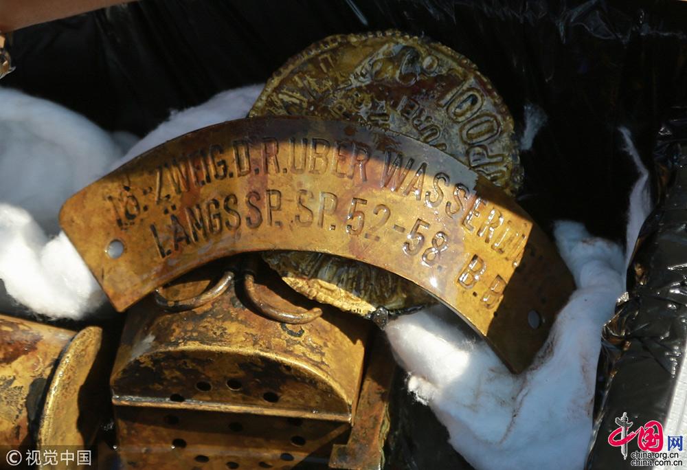 2018年9月25日,遼寧大連,在莊河黑島海域甲午戰(zhàn)爭(zhēng)“經(jīng)遠(yuǎn)艦”遺址出水的各類(lèi)遺物標(biāo)本。視覺(jué)中國(guó)