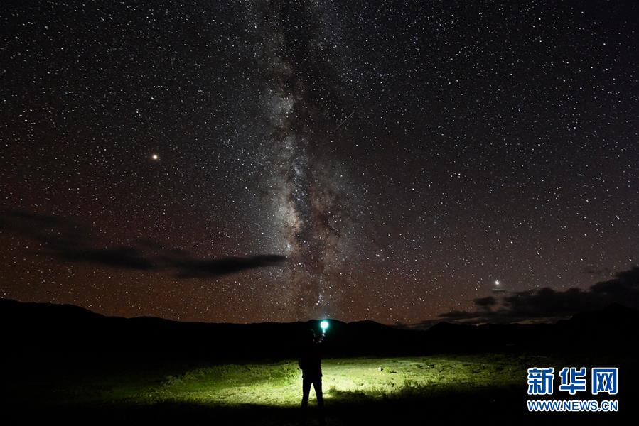 西藏阿里境內拍攝的銀河(9月12日攝)。西藏阿里地區平均海拔4000米以上。這里擁有得天獨厚的自然條件,大氣通透度、晴空率、夜空質量等指標優異,遠離光污染,是星空攝影愛好者的理想選擇地。新華社記者 普布扎西 攝