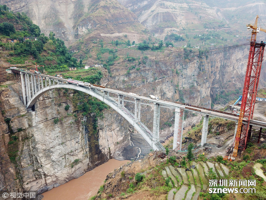 2018年5月30日,云南昭通,鸚哥大橋完成最后一段35米引橋現(xiàn)澆箱梁作業(yè),標(biāo)志著“鸚哥溜索改橋”主體工程完工,進(jìn)入最后階段的橋面鋪裝和防護(hù)欄施工,預(yù)計6月底建成通車。