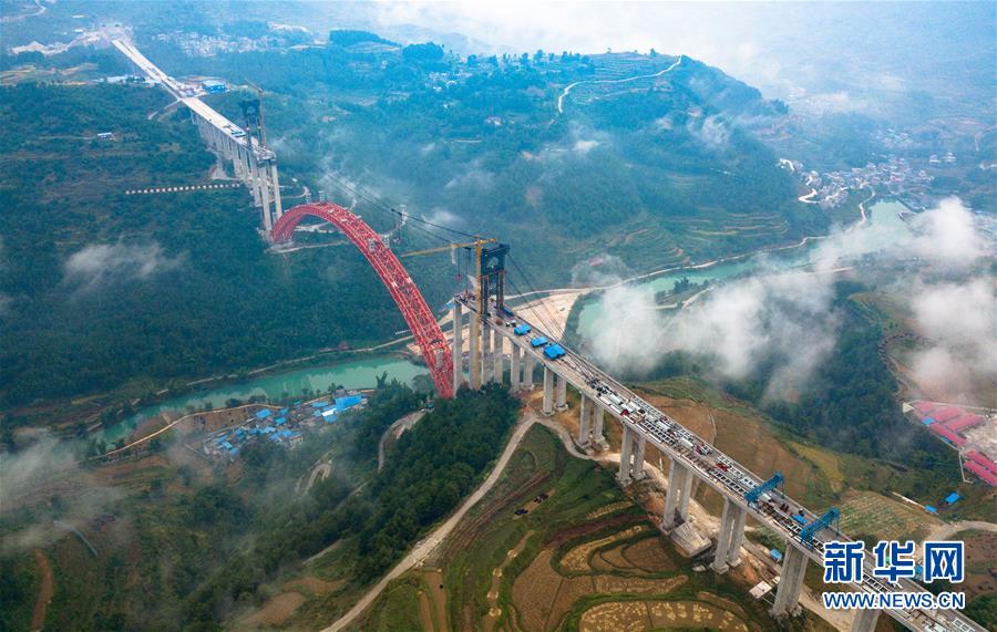 9月12日使用無人機拍攝的大小井特大橋。 目前,橫跨在貴州省羅甸縣大井河上的大小井特大橋建設(shè)進(jìn)入沖刺階段。大小井特大橋全長1.5公里,主跨450米,是世界最大跨徑上承式鋼管混凝土拱橋。據(jù)了解,該橋是平塘至羅甸高速公路關(guān)鍵性工程,對打通貴州“斷頭路”,助推滇黔桂石漠化片區(qū)脫貧攻堅具有重要意義。 新華社記者劉續(xù)攝