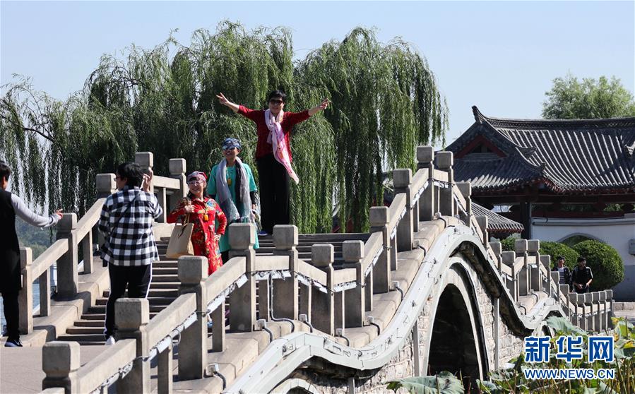 9月30日,游客在免費開放的濟南市大明湖景區游覽。近年來,山東積極推進國有景區免費開放工作,截至目前,山東實現免費開放的國有景區已達286處。新華社記者徐速繪攝