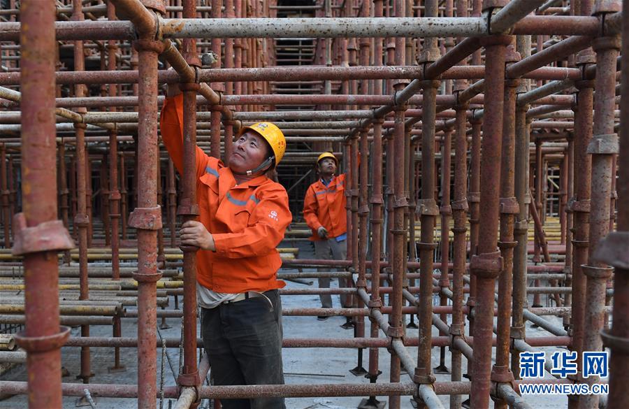 10月1日,中建三局三公司建筑工人在南京世茂外灘新城項目現場施工。當日是國慶節,許多勞動者堅守在工作一線,在崗位上度過節日。新華社記者李響攝