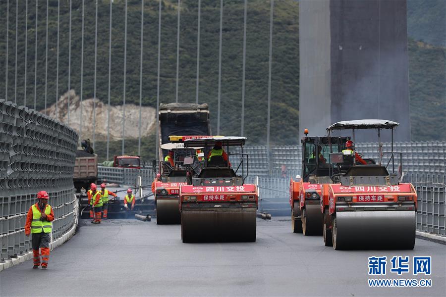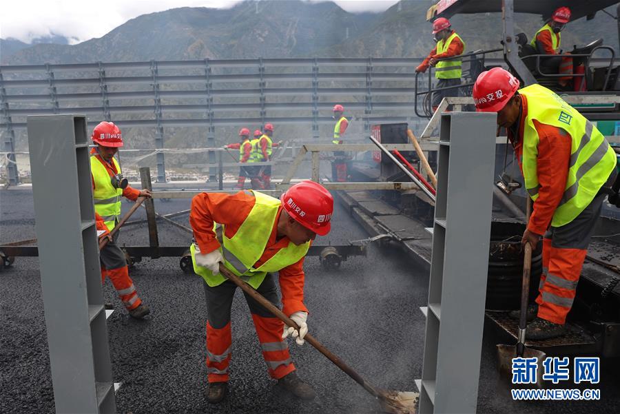 10月1日,建筑工人在雅康高速瀘定大渡河興康特大橋施工現場作業。當日是國慶節,許多勞動者堅守在工作一線,在崗位上度過節日。新華社記者江宏景攝