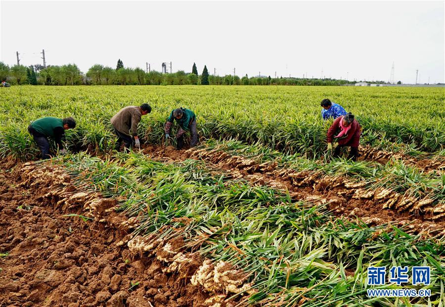 10月9日,秦皇島市撫寧區留守營鎮桑園村農民在收獲生姜。 近年來,河北省秦皇島市撫寧區在農業結構調整過程中,引導當地農民種植優質無公害生姜,并安排農業技術員定期到田間指導農民對生姜進行標準化管理。據介紹,今年該縣生姜種植面積1萬多畝,預計產生姜5萬噸,種植戶每畝純收入達1萬多元。 新華社記者 楊世堯 攝
