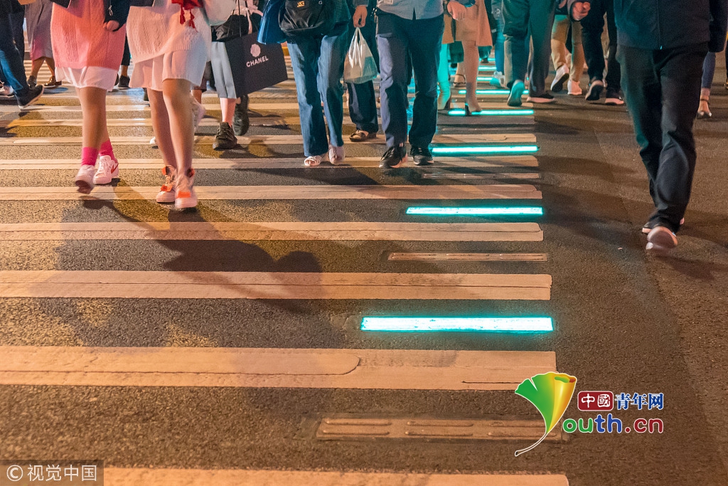 2018年10月10日,上海首條會發光人行道十一期間在外灘投入使用。
