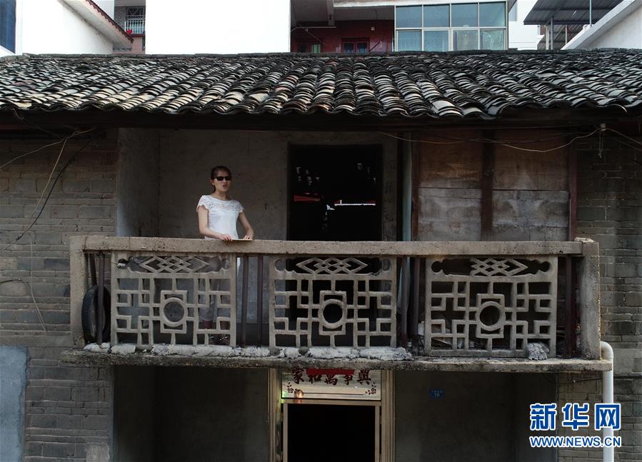 9月26日早晨,楊虹在自家陽臺練習發聲(無人機拍攝)。