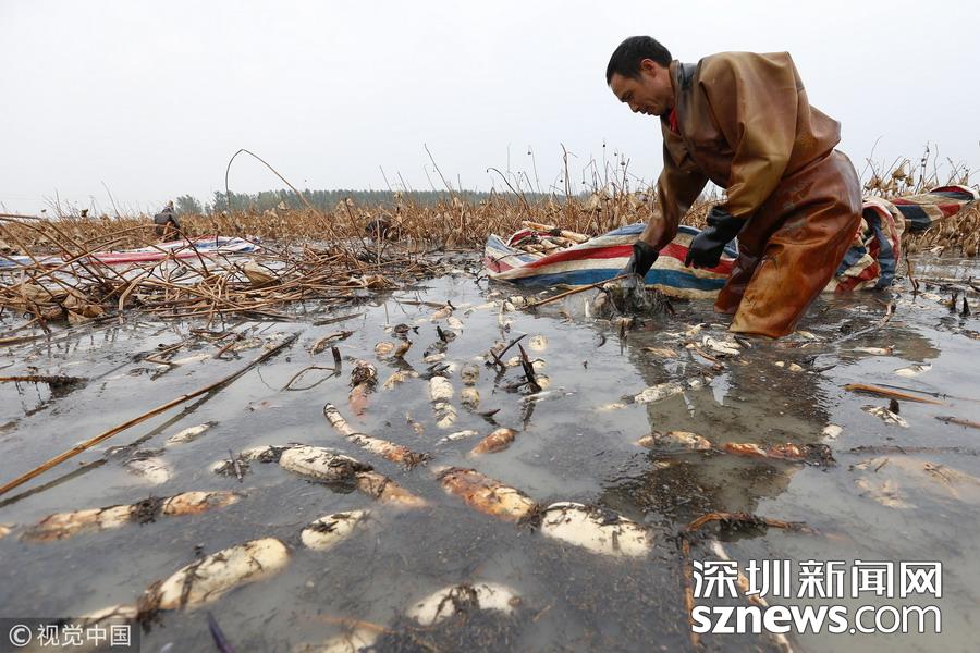 2018年10月14日,江蘇宿遷,泗洪縣曹廟鄉瓦廟村村民在藕蝦共作基地參加挖藕比賽。