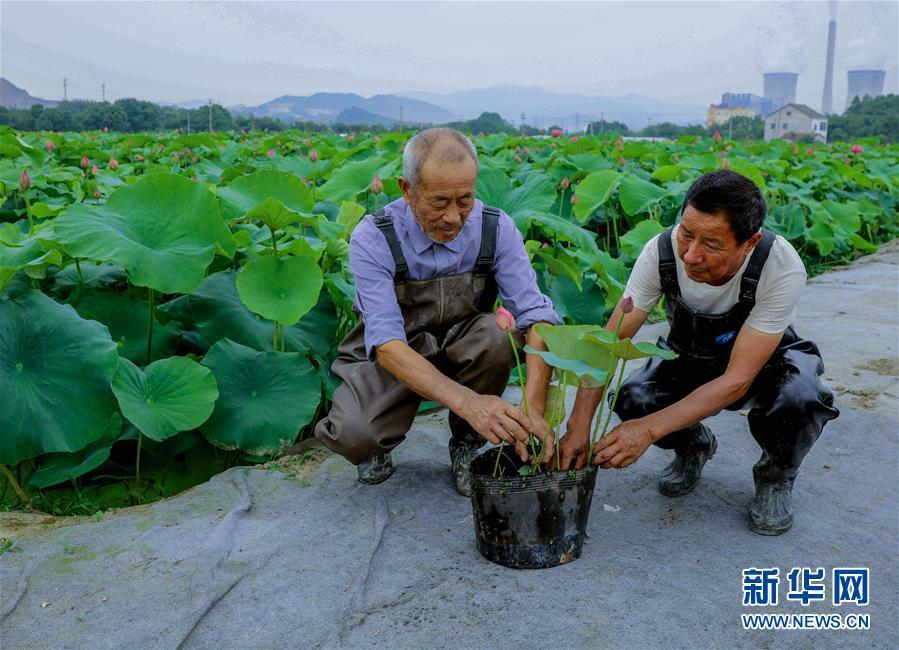 6月3日,荷農們將觀賞性荷花裝盆準備銷售。 進入初夏時節,浙江省湖州市長興縣呂山鄉圣蓮苑荷花基地內200多畝30多種各色荷花競相開放,該基地也迎來了荷花銷售和旅游觀光的旺季。據介紹,呂山鄉是浙江省長興縣當地傳統的蓮藕產區,近年來開始逐步升級打造“荷花之鄉”。不同于傳統的種荷收藕的思路,當地借助“生態+創意”的理念種植、銷售觀賞盆栽荷花,一畝觀賞性荷花的產值可達到8萬元,比普通種植蓮藕增收超過20倍,同時也推動了鄉村旅游經濟,帶動荷農收入增長,助力鄉村振興。新華社記者徐昱 攝