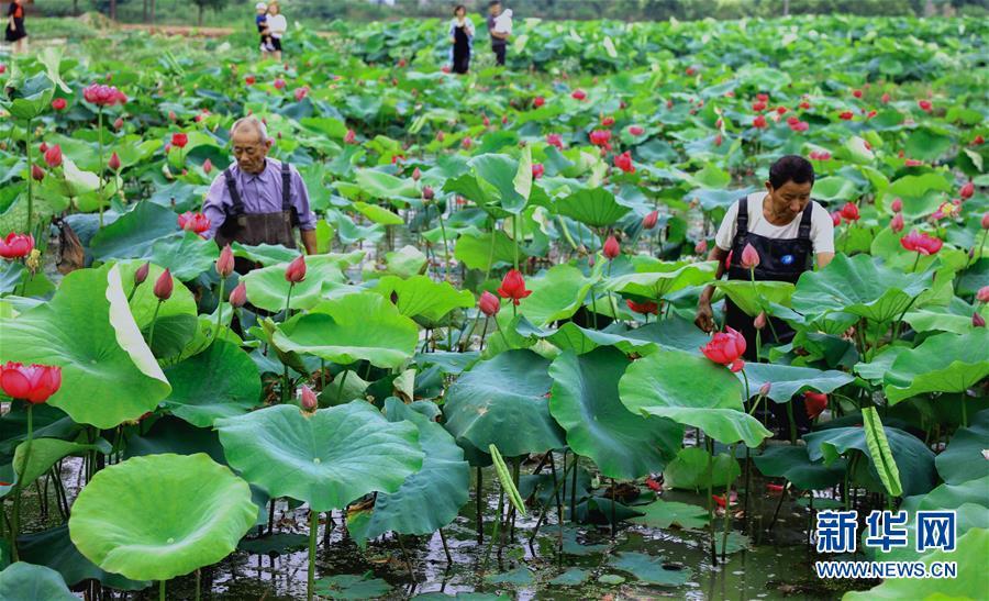 6月3日,荷農們在荷花基地里挑選準備出售的觀賞性荷花。新華社記者 徐昱 攝 |