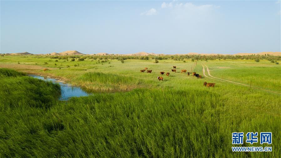內蒙古杭錦旗位于庫布其沙漠中的生態修復景觀(7月11日無人機拍攝)。 新華社記者彭源攝
