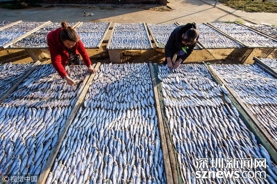 訊 連日來,秋風颯爽,艷陽高照,當地漁村迎來豐收季,漁民們在鄱陽湖畔的漁港岸邊和屋前屋后晾曬魚蝦,忙的不亦樂乎。