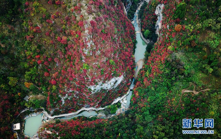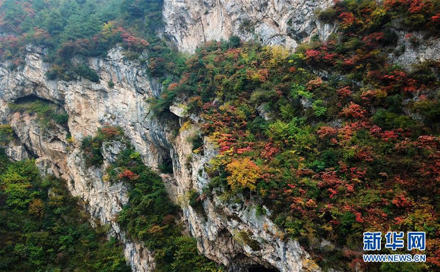 這是西狹頌景區秋景(10月16日無人機拍攝)。 新華社記者 陳斌 攝