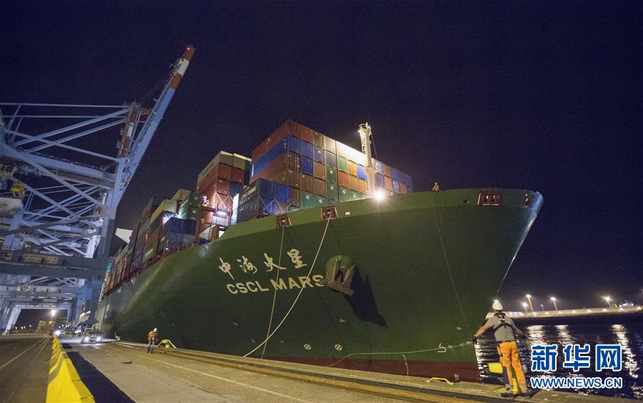 10月15日晚,中遠海運旗下的“中海火星”號集裝箱輪停靠在比利時澤布呂赫港集裝箱碼頭。