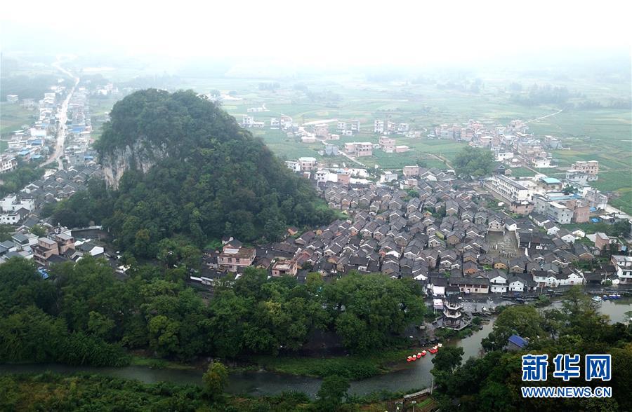 廣西富川瑤族自治縣朝東鎮秀水村連片民居(10月19日無人機拍攝)。 新華社記者 周華 攝