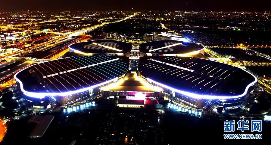 夜幕下的國家會展中心 “四葉草”燈光璀璨