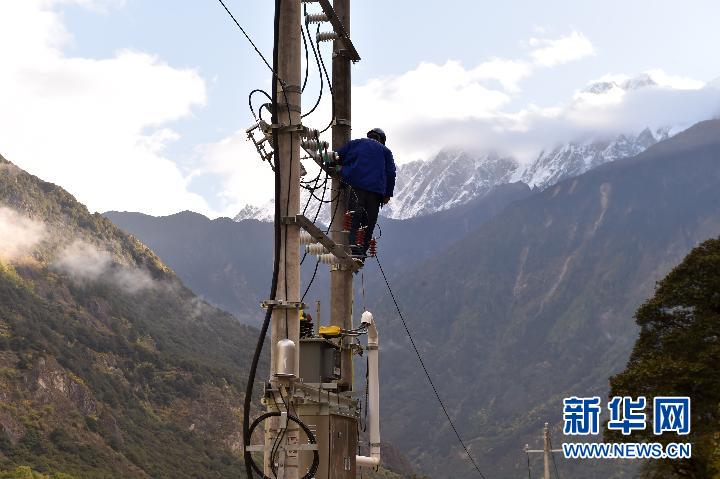 湖水淹沒地段,電力部門實施斷電措施,以防意外發生(10月18日攝)。 新華社記者 覺果攝