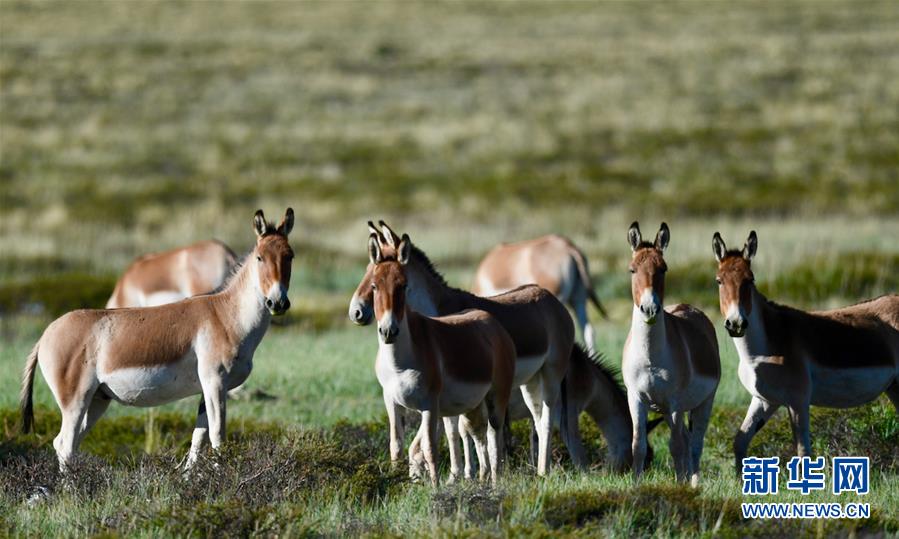 在西藏阿里地區境內拍攝的國家一級保護動物藏野驢(9月8日攝)。 阿里地處西藏西部,平均海拔4500米以上,面積30多萬平方公里,羌塘國家級自然保護區幾乎涵蓋整個阿里地區,是眾多野生動物生活的樂園。 新華社記者 普布扎西 攝