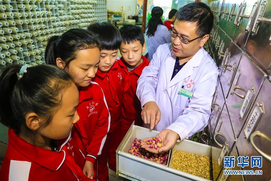 10月22日,安平縣啟蒙小學學生在安平縣中醫院的中藥房識別各類中藥材。 當日是世界傳統醫藥日,河北省安平縣啟蒙小學組織學生走進安平縣中醫院,通過參觀中藥房、認識常見中藥、感受中藥加工等方式,向小學生普及中醫藥知識,弘揚傳統中醫藥文化。 新華社記者李曉果攝