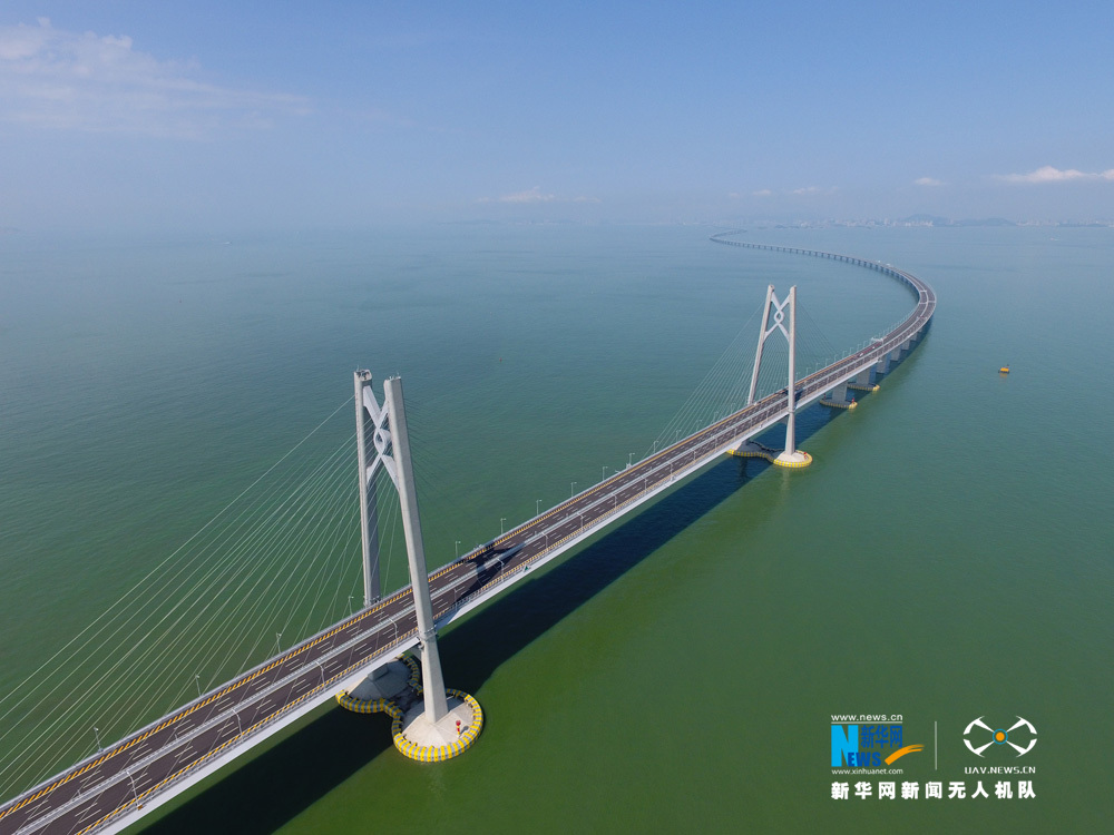 港珠澳大橋開通儀式23日上午在廣東珠海舉行。港珠澳大橋跨越伶仃洋,東接香港,西接廣東珠海和澳門,總長約55公里,是粵港澳三地首次合作共建的超大型跨海交通工程。