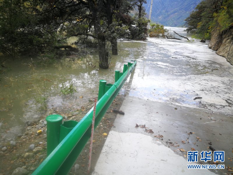 通往西藏林芝米林縣加拉村的道路被水淹沒(méi)(10月18日攝)。 新華社記者 覺(jué)果攝