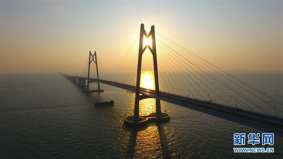 清晨的陽光穿過港珠澳大橋“中國結”橋塔(2017年12月27日無人機拍攝)。 金秋十月,伶仃洋上海天一色、潮聲陣陣,依傍著這片中國南海水域的城市群迎來深具意義的一天。 10月23日上午,港珠澳大橋開通儀式在廣東珠海舉行,中共中央總書記、國家主席、中央軍委主席習近平出席儀式,宣布大橋正式開通。 碧波之上,一橋飛架香港、澳門、珠海三地,以氣貫長虹的“中國跨度”,飛越滄海百年的歷史風云,展現當代中國的雄健風采。 新華社記者梁旭攝