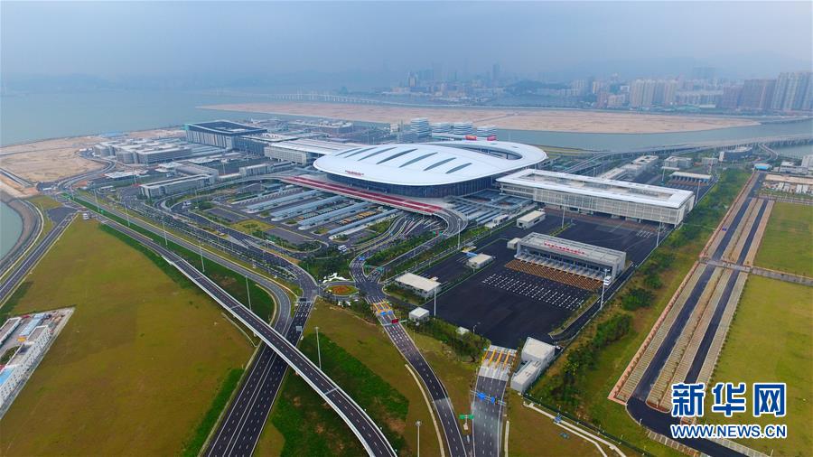 10月24日無(wú)人機(jī)拍攝的港珠澳大橋珠海公路口岸。當(dāng)日9時(shí),港珠澳大橋正式通車(chē)。 新華社記者梁旭攝