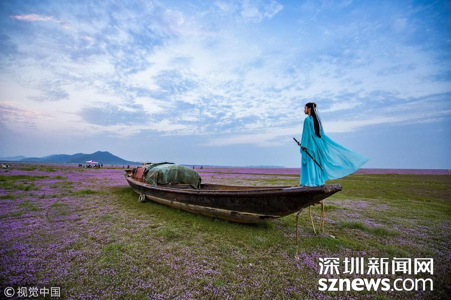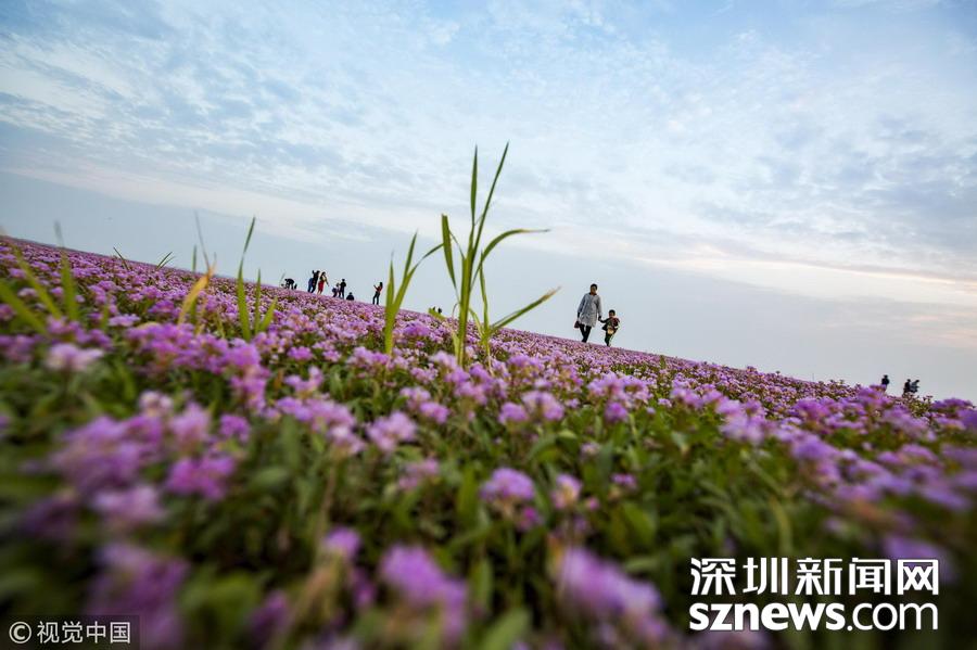 深圳新聞網訊 2018年10月23日,南昌,游人在江西鄱陽湖都昌濕地蓼子花海內游玩。連日來,中國第一大淡水湖江西鄱陽湖濕地大面積蓼子花開放,秋景宜人,紫色的花海吸引大批游客前來賞景游玩。