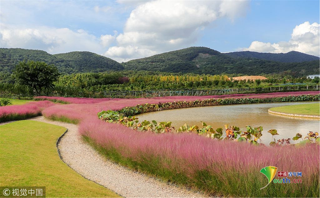 2018年9月26日,江蘇鎮江。金秋時節,美景醉人。這兩天,句容寶華山下大片的粉黛亂子草全部泛紅,形成一片夢幻的粉色草海,如云霞似粉霧,美的令人窒息,為這個金秋增添了一道浪漫的氣息。