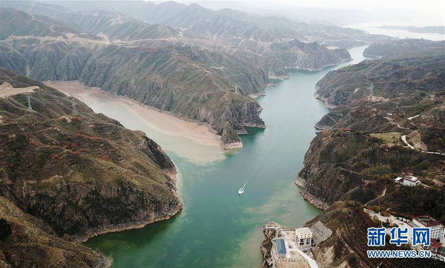 這是10月24日無人機拍攝的劉家峽水庫庫區和水庫大壩。 新華社記者 陳斌 攝
