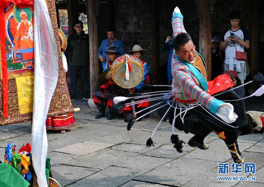 頭戴“藍”面具、身著五彩裝……附耳在一鼓一鈸中,且看這18名雪域農牧民,在這江南水鄉的柔情中吟唱而舞。10月23日至28日,浙江烏鎮西柵景區的安渡坊碼頭廣場上,珠峰藏戲《頓月頓珠》吸引眾多游客駐足。參與演出的迥巴藏戲隊來自西藏日喀則市昂仁縣,人們在領略到藏戲風采的同時,也感受到了雪域農牧民的純樸熱情。 藏戲是戴著面具、輔以唱舞敘事的藏族戲劇。內容取材自民間故事、歷史傳說等,距今已有600多年歷史,被譽為“西藏文化的活化石”。2006年被列入國家級非物質文化遺產,2009年被聯合國教科文組織認定為世界級非物質文化遺產。