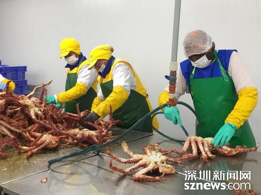智力蜘蛛蟹加工基地, 產于南極洲海域。 李仁奇 攝