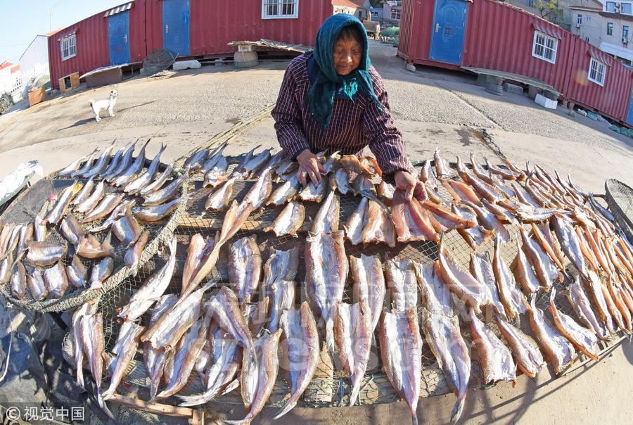 金秋時節,江蘇連云港市沿海秋捕迎來豐收,漁民們將捕獲的鯧魚、鰻魚、小黃魚、烏賊等經過腌制、晾曬加工成魚干,海島處處呈現出一派豐收景象。