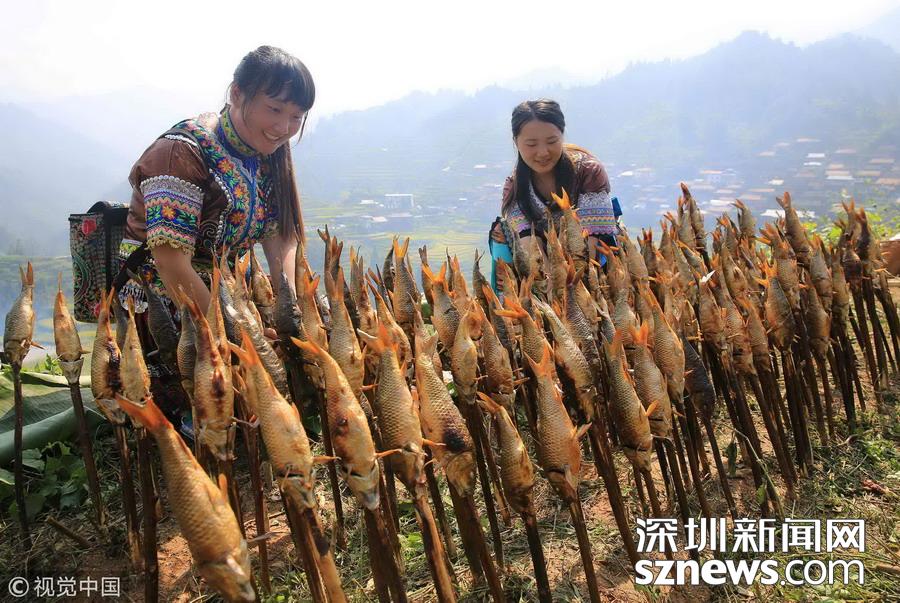 廣西柳州市融水縣山區有插秧時節放養鯉魚苗的習俗,金秋時節稻熟魚肥,收稻燒魚成為別致一景。