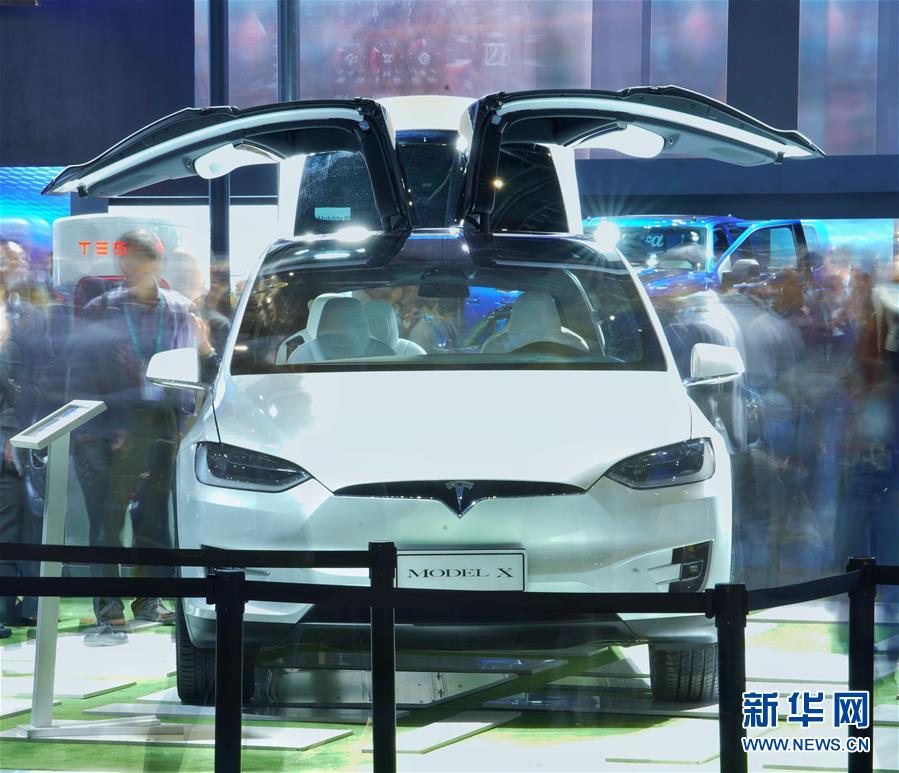 11月7日,觀眾在特斯拉展位參觀MODEL X汽車。