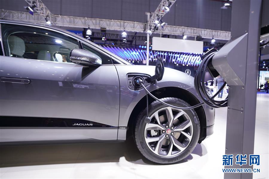 這是11月5日在汽車展區拍攝的捷豹純電動I-PACE汽車。新華社記者 孟鼎博 攝