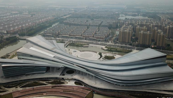 深圳新網網訊 始建于2016年9月的貴州省獨山縣水司樓已進入工程收尾階段。雄偉壯麗造型別致的水司樓,是集會展博覽、酒店住宿、游覽觀光等于一體的大型綜合體。除具有水族特色元素外,該建筑還融合了苗族、布依族特色,是獨山縣凈心谷景區最具標志性的宏大建筑。該樓占地面積5900平方米,總建筑面積60000平方米,樓高99.9米,共24層,是世界上最高大最大最壯觀的水族建筑,被稱為“天下第一水司樓”。 水司樓是按照水族依山畔水而居的傳統習俗和建筑特征修建,是水族人民的文化符號和智慧的象征,背靠凈心河谷山脊,以弧形的平面布局模式,如同張開懷抱的巨人,緊擁美麗的姻脂河灣,設計巧妙,工藝精巧。