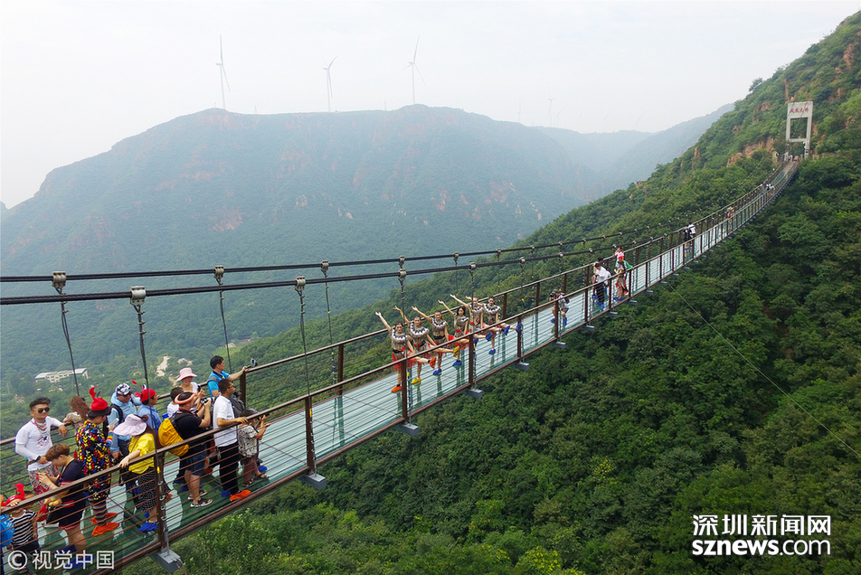 2018年6月30日,鄭州新密一景區的玻璃吊橋上,幾名美女大學生身穿“野人”服裝練習瑜伽,吸引了眾多游客的圍觀。據了解,這些大學生來自鄭州。