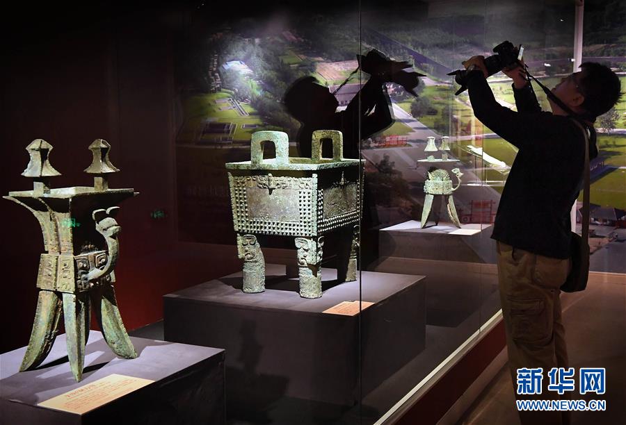 10月12日,參觀者在安陽博物館參觀拍攝。目前,“鳳歸大邑商——殷墟婦好文物安陽故里展”正在安陽博物館展出,共展出文物474件。1976年被考古學家發(fā)現(xiàn)的婦好墓,是世界文化遺產、中國商代后期都城遺址——殷墟唯一保存完整的商代王室墓葬。新華社記者李安攝