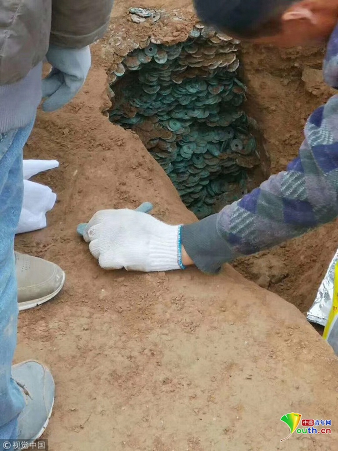 經過發掘清理,古幣中最早的是唐開元年間的,最晚的為南宋時期,絕大多數都是北宋時期的錢幣。白水縣文物管理委員會主任趙張鋒介紹,這些古幣數量比較大,一般個人很少持有如此多的錢幣,初步分析可能是當時一個錢莊存放的錢幣,有可能當時遇到戰亂,匆忙之下進行埋藏,但后來再無機會挖出。