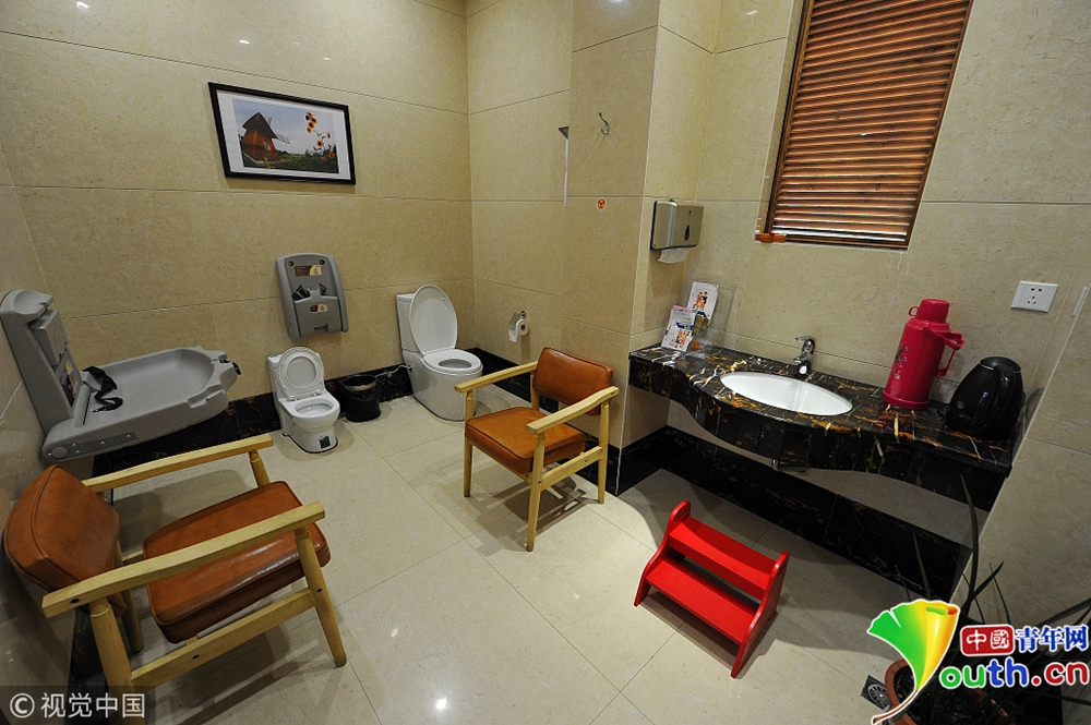 還設有第三衛生間,是專為殘疾人、以及帶著小孩的父母們提供的一個私密空間。免費上這樣超豪華、且復古又特有文藝范兒的公廁,能讓人感受到一種如“家”般的舒適,像是進了五星級酒店似的。