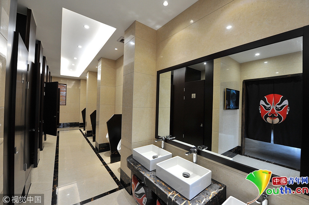 “第5空間”男女廁所的廁標別具特色,選用京劇臉譜的形式,讓人充滿了新奇感。公廁內設有母嬰室,里面安裝了各類為帶嬰兒的媽媽們上廁所提供便利的設施,除洗手池和供兒童、成人專用坐便器外,還有折疊式的嬰兒座椅和護理臺,這樣帶嬰兒的媽媽進來如廁,就可以把孩子安全地放在椅子上;如果孩子需要換尿布,也可以在護理臺上完成。