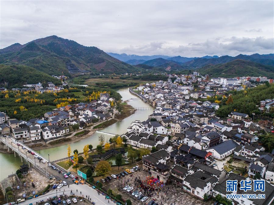 11月19日無人機航拍的河橋古鎮。 新華社記者 徐昱 攝