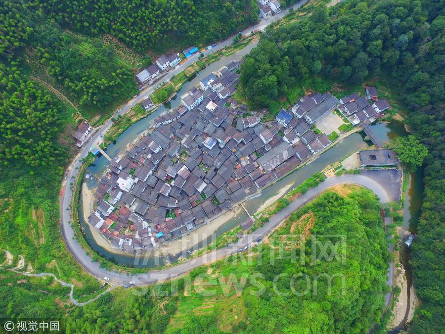 深圳新聞網訊 四面青山環繞,小河成大半圓形圍繞一周,眼前這個山環水繞的小村莊被稱為“中國最圓的村莊”,沿山間小路建設的臺階而上,站在一處觀景臺往下看,這個村子的形狀在山水襯托下,宛如一個圓形的島嶼。