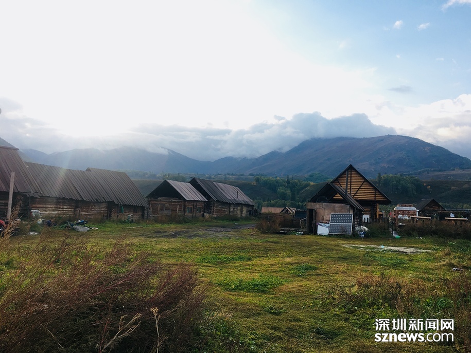 禾木是一個有幾百戶人家的小村落,進入禾木村,首先進入眼簾的是一棟棟的小木屋、成群結隊的牧群、重巒疊嶂的群山和枝葉濃茂的森林,蒼翠欲滴的草地與碧空如洗的藍天相互呼應。李冉攝