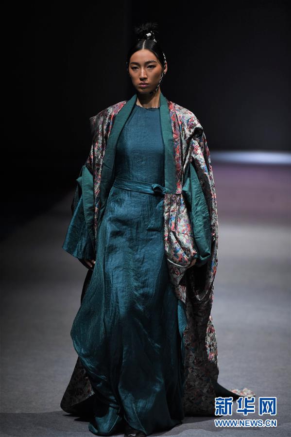 模特在AJ-NAMO藏裝秀上展示藏族設(shè)計師阿佳娜姆設(shè)計的時裝(11月18日攝)。